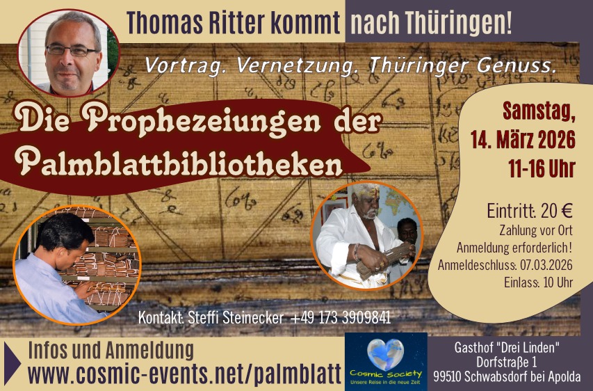 Die Prophezeiungen der Palmblattbibliotheken: Netzwerk-Event und Vortrag mit Thomas Ritter & Cosmic Society in Thüringen
